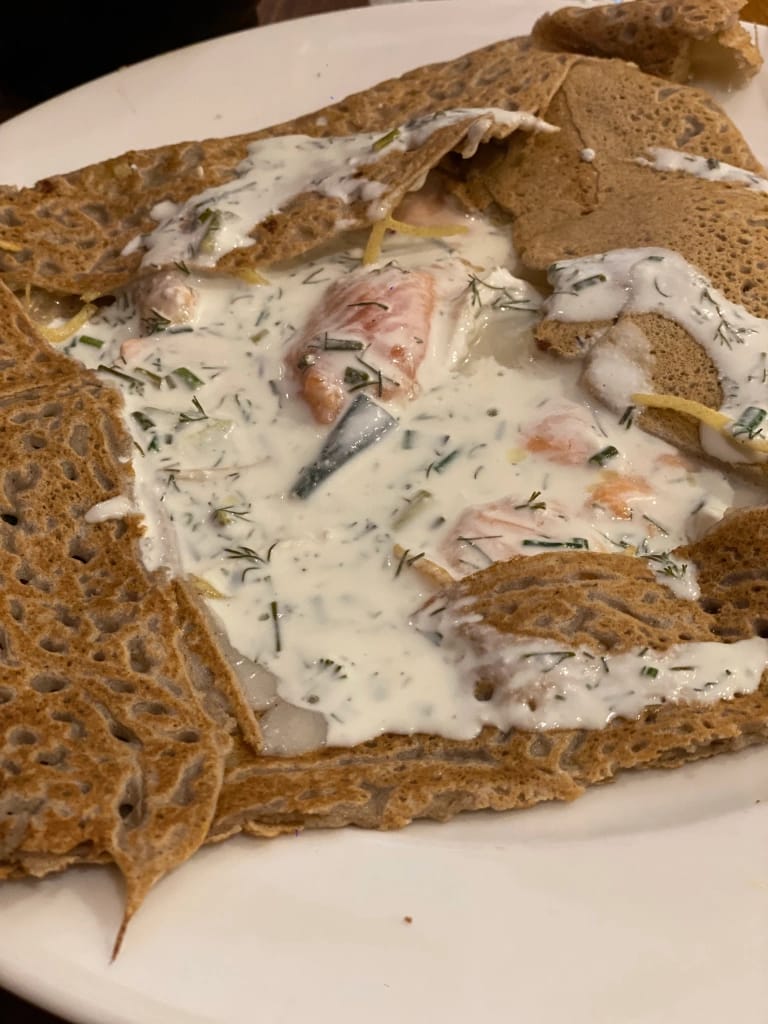 Nom d une crepe; no había probado unos creps tan deliciosos como estos. Tienen menú clásico por 12.90€, de 14.90€ y 16.90€ para mi el de 14.90€ era muy completo no incluye bebida pero recuerda que siempre puedes pedir agua de garrafa gratis.